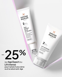 Cette offre est valable pour l’achat d’une crème ou d’un sérum anti-âge, en ligne et directement à la boutique Simone Institut.